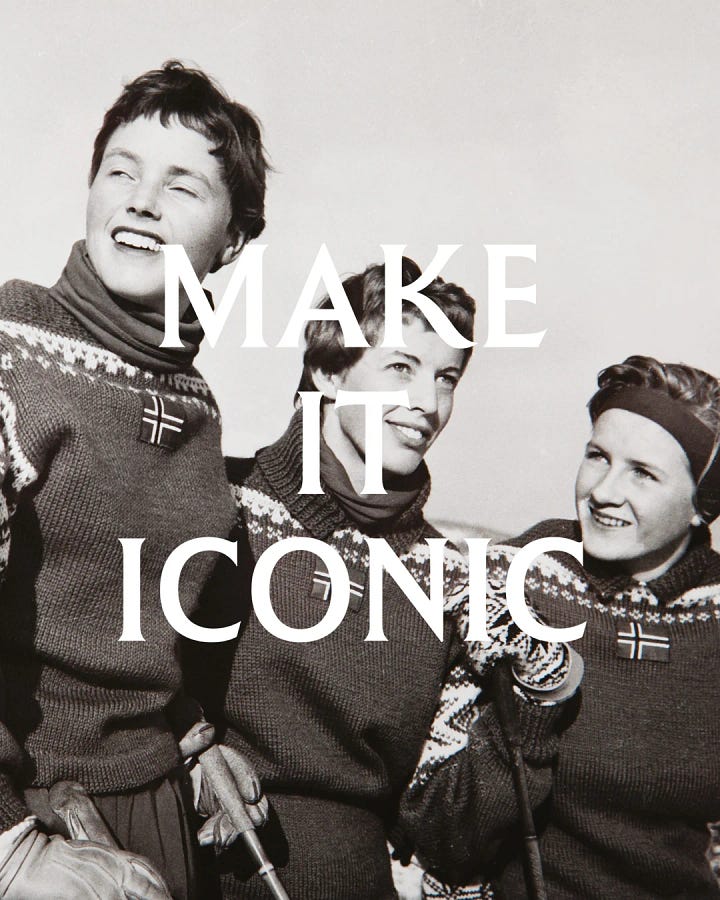 Fun fact: it’s modeled after the same sweater the Norwegian team wore to the Olympics 70 years ago, also in Cortina, which also happened to be the first year that this deisnger designed for the Norwegian Olympic team! Talk about legacy-stacking.